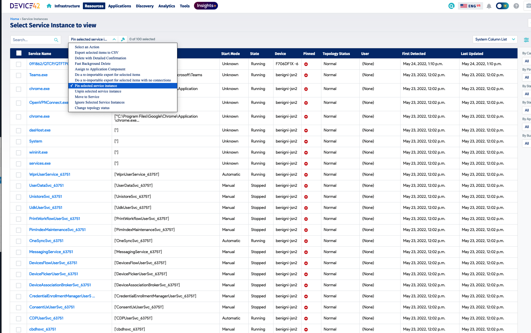 Application Groups use the concept of pinned services. Pinned services represent the core dependencies of your infrastructure, and discovered database services are automatically pinned by default.