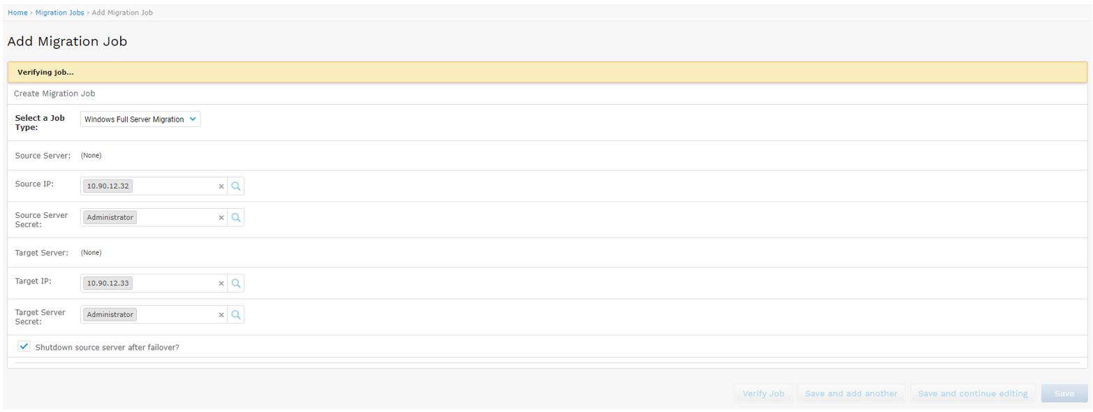 - Once this process has started, it cannot be undone, and when it completes, the source and target IPs on the Migration Jobs list page will become the same. At this point, no other actions can be performed on this job and you will get a message warning you of that if you try the action links. The only thing that can be done at this point if you’re satisfied with the migration is to delete it via the edit screen.