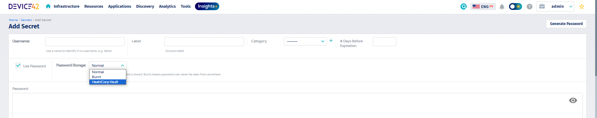 Please note that passwords retrieved from HashiCorp Vault are not viewable in Device42.